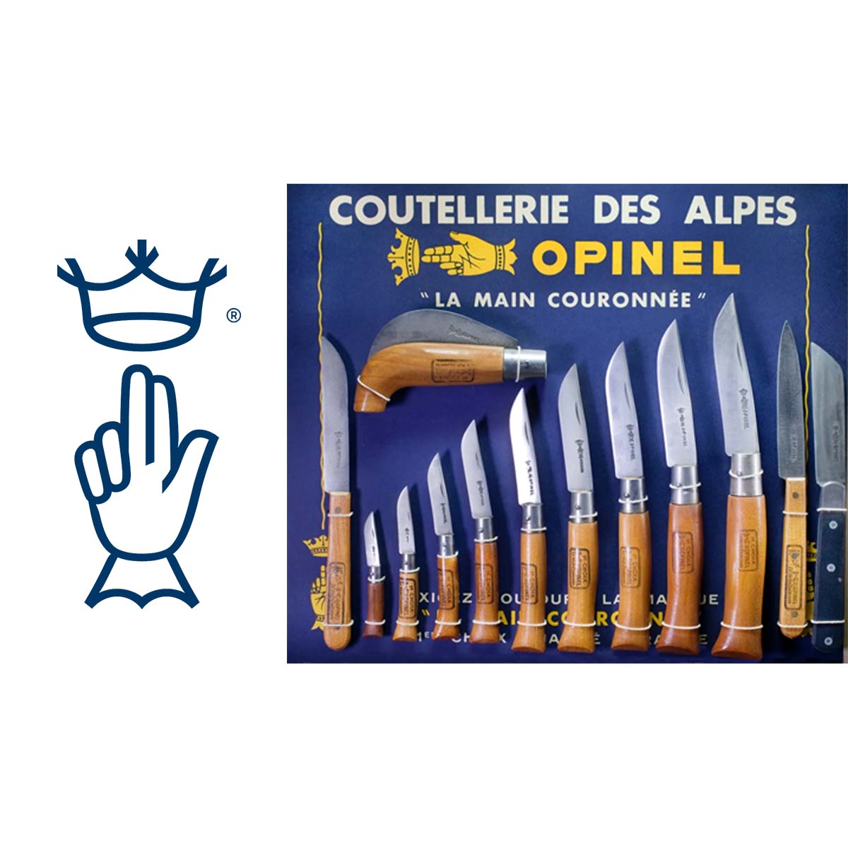 In 1565, King Charles IX of France ordered that every master cutler affix an emblem on their manufactured items to attest for the origin and quality. To follow in this tradition, Joseph Opinel chose the Crowned Hand as his emblem in 1909. The blessing hand is that of Saint John the Baptist, taken from the coat of arms of Saint-Jean-de-Maurienne, the nearest town in Albiez-le-Vieux, the birthplace of the Opinel family. Joseph Opinel added a crown as a reminder that Savoie was a duchy. All the blades on Opinel knives and tools have been stamped with The Crowned Hand ever since.