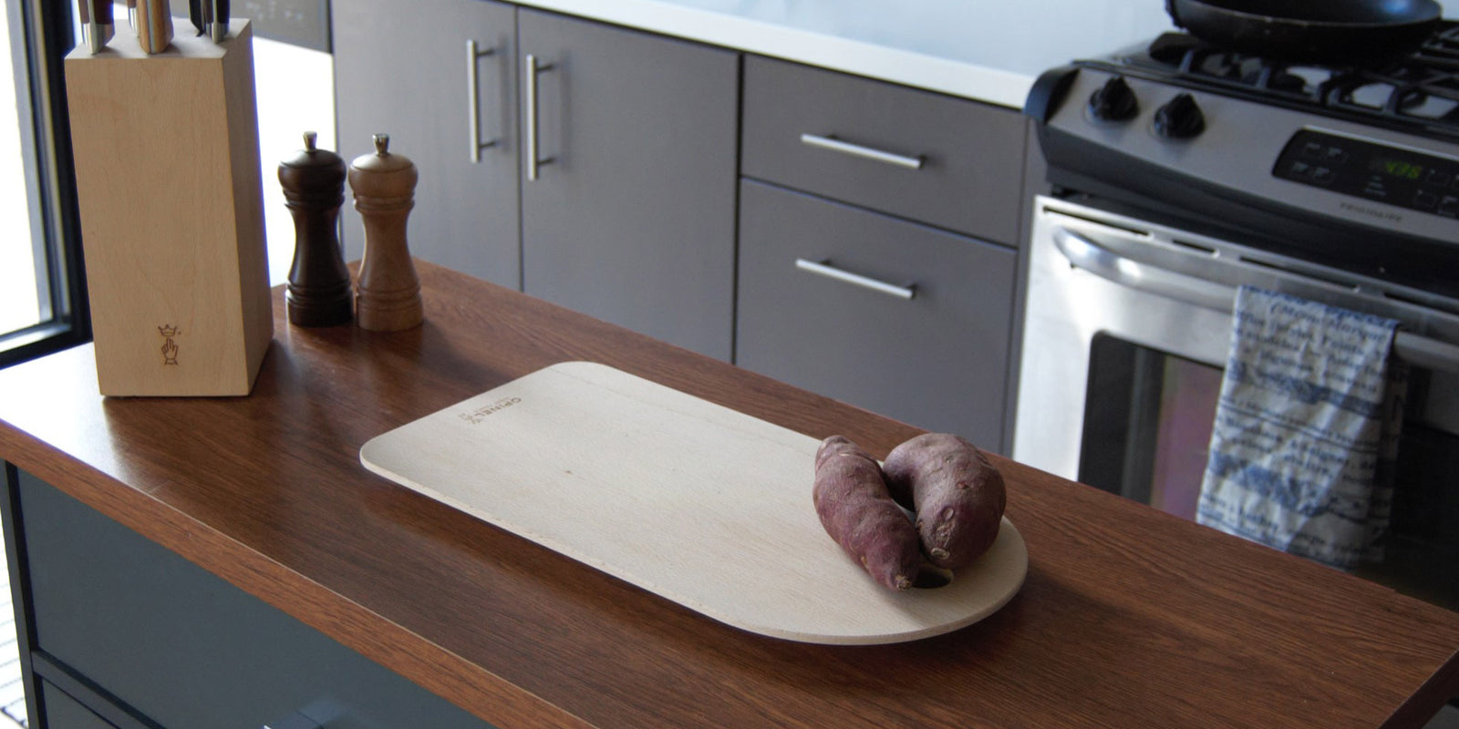 The cutting Board was designed in collaboration with Swiss designers, Big Game. It is ideal for cutting and mincing fruits and vegetables or food prep. It is lightweight and can easily be carried out to outdoor cooking settings. Additionally, you can use it as a cheese or appetizer platter for parties up to 4-6 guests.